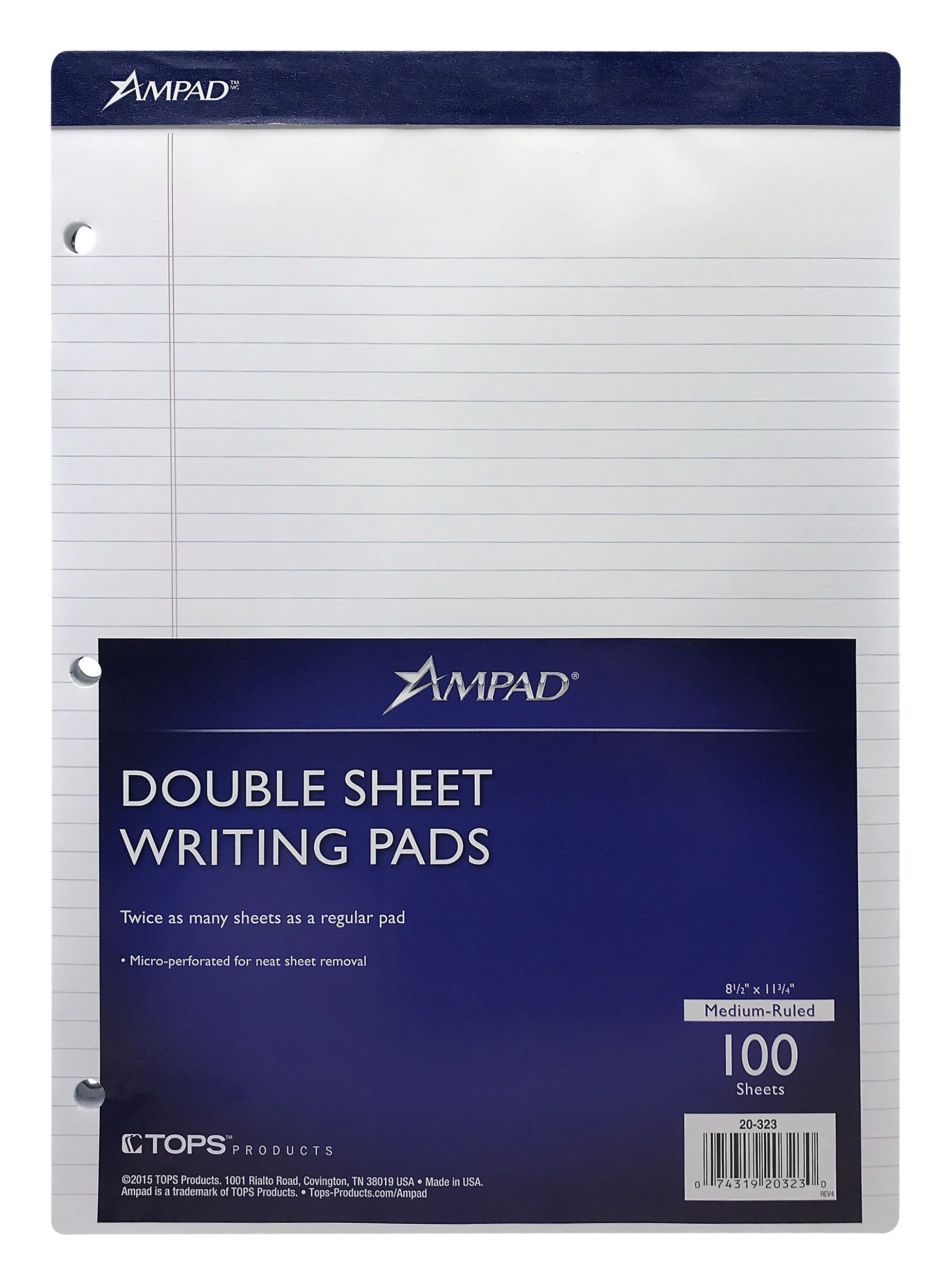 Letter size microperforated 3 hole drilled white 8 12 x 11 34 college ruled pad with a margin, lined 100 sheet Evidence DualPads